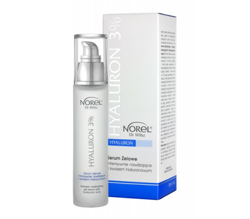 Эта увлажняющая гелевая сыворотка с 3% гиалуроновой кислотой NOREL HYALURON 3% INTENSIVE MOISTURISING GEL SERUM WITH HYALURONIC ACID 50мл на основе уникального сочетания двух высококонцентрированных активных форм низкомолекулярной массы (2%) и высокомолекулярной массы (1%) гиалуроновой кислоты. Эта смесь прекрасно совместима с кожей человека (эффективно проникает через роговой слой (stratum corneum) и отображает уникальные увлажняющие и смягчающие свойства. Гиалуроновая кислота эффективно связывает воду в эпидермисе долгое время сохранять надлежащее увлажнение, упругость и эластичность кожи. Гиалуроновая кислота с высокомолекулярной массой действует как увлажняющий компресс, разглаживает кожу и защищает ее от потери воды, а гиалуроновая кислота с низкомолекулярной массой проникает через роговой слой эпидермиса связывать влагу в коже на долгое время, и восполнит любой дефицит воды.